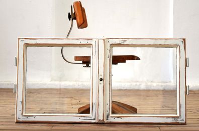 ein Paar Holzfenster Antik Alt Vintage Shabby Weiß Deko Landhaus Weiß Fensterflügel