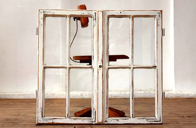 2x Sprossenfenster Antik Alt Vintage Shabby Weiß Deko Landhaus Weiß Fensterflügel