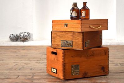 Set 3 x Kiste mit Deckel Holz Antik Alt Vintage Shabby Kasten Uhrmacher Truhe Groß
