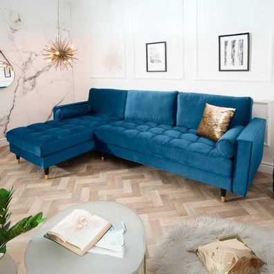 Ecksofa 260cm Ottomane beidseitig Comfort blau Samt Federkern Design Elegant Lounge