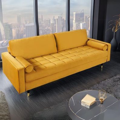 Elegante Sitzbank HORA ca.160cm Samt grau Retrostil Ziersteppung Armlehnen