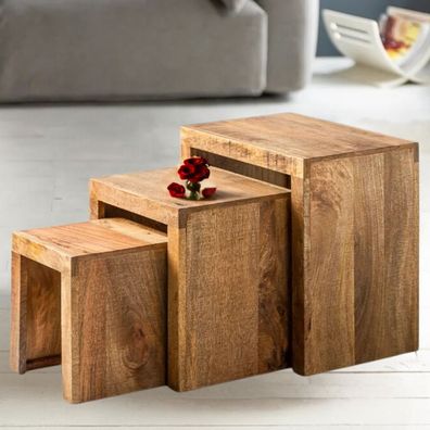Trendiges 3er-Set SARA Couchtisch Beistelltisch natur Mango