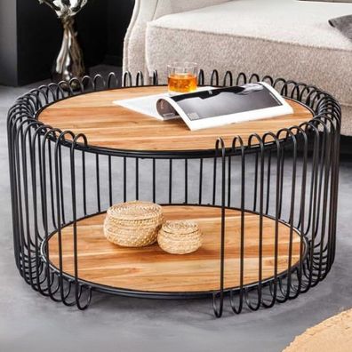 Moderner Massivholz Couchtisch PRAWDA 70cm Akazie natur Eisengestell schwarz