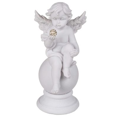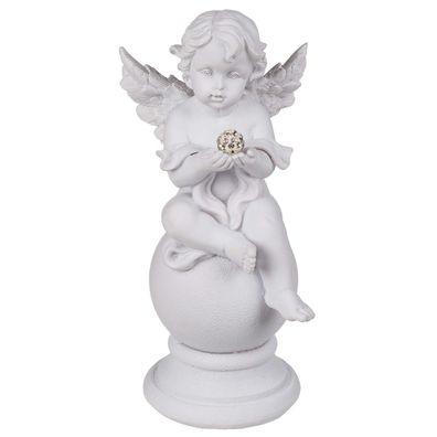 Sitzender weißer Polyresin Engel auf Kugel mit Kristalldeko Engelsfigur