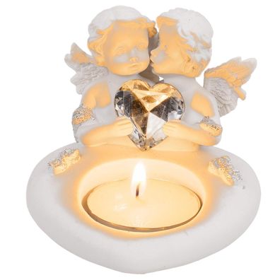Herz Teelichthalter mit Engelfiguren und Kristallherz Engelsfigur Paar Engelpaar