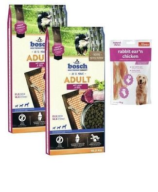 2x15kg Bosch Adult Lamm & Reis Hundefutter + 80g Fleischsnacks