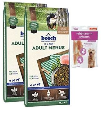 2x15kg Bosch Adult Menue Hundefutter + 80g Fleischsnacks