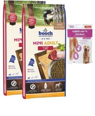 2x15kg Bosch MINI Adult Lamm & Reis + 80g Fleischsnacks