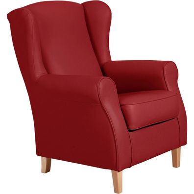 Ohrensessel Karlen Bezug Samtvelours Buche natur / rot 2204