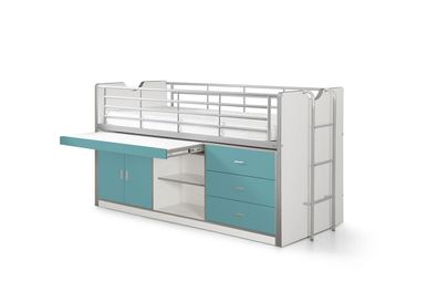 Hochbett Kalinda 207x96x116 Holzwerkstoff+Metall Weiß/Türkis