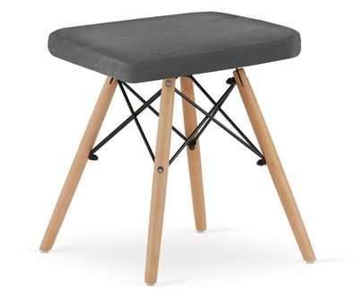 Best For Home Hocker 4er Set - Grauer Samt, natürliche Holzbeine, omfortabel & modern