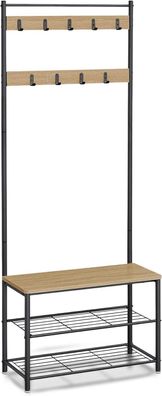 Best For Home Garderobe - Kleiderständer mit Bank & 2 Schuhregalen, Stahl, Schwarz