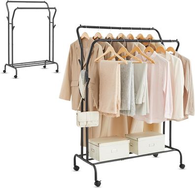 Best For Home , Kleiderständer auf Rollen , Schwarze Kleiderstange mit Ablage & Stang
