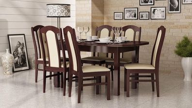 Best For Home Esstisch 160x90/200 cm Nussbaum Dunkel & 6 Stühle , Set Nr. 3, EU Made