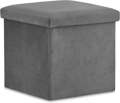 Best For Home Faltbarer Pouf mit Stauraum - Samt Sitzhocker & Spielzeugkiste 38x38x36