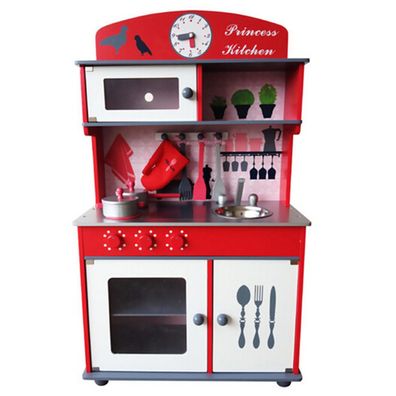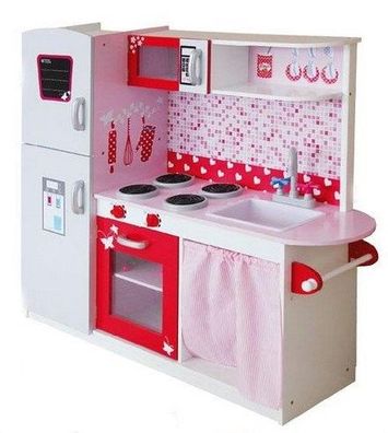 Best For Kids Kinderküche W10C026 aus Holz rot Spielküche mit Zubehör aus MDF Platte