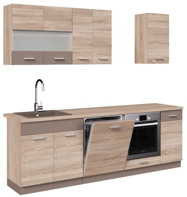 Küche ALINA mit Hochschrank 260 cm Küchenzeile Einbauküche Sonoma Eiche