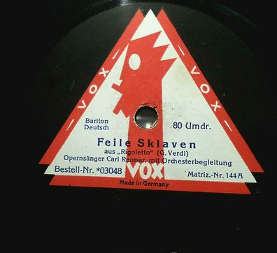 CARL RENNER, Bariton "Feile Sklaven / Prolog aus "Bajazzo" VOX 80rpm 12"