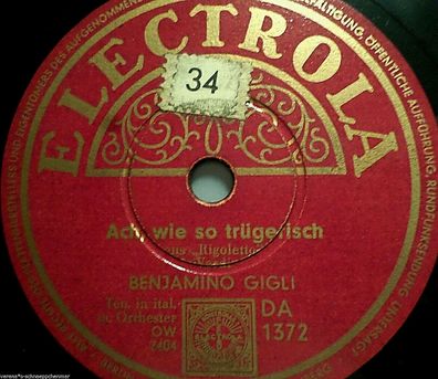 Benjamino GIGLI "Und es blitzten die Sterne / Ach, wie so trügerisch" Electrola