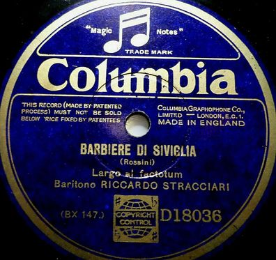 Riccardo Stracciari Baritone "Largo al factotum / Toreador" Columbia 78rpm 12"