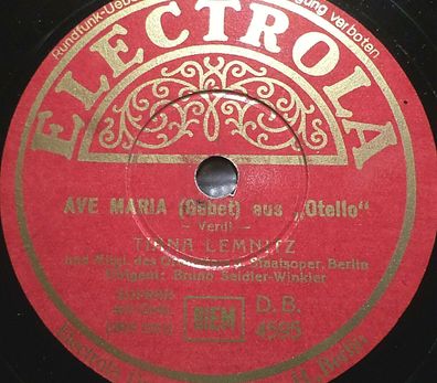 Tiana Lemnitz "Ava Maria / Desdemonas - Lied von der Weide" Electrola 78rpm 12"