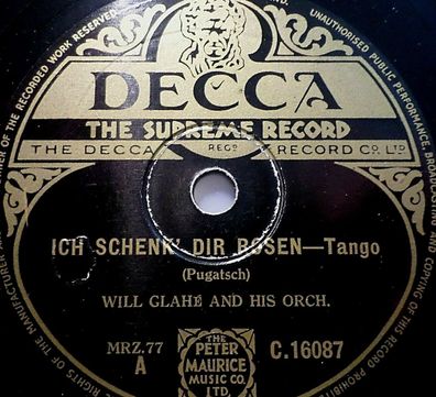 WILL GLAHE "Mariandl / Ich schenk´ dir Rosen" Decca 78rpm 10"