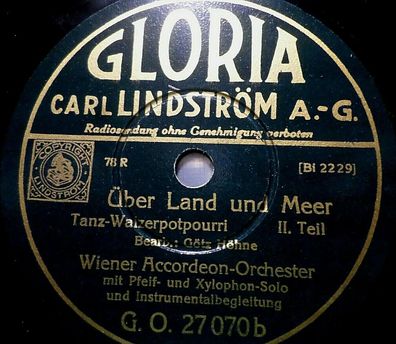 Wiener Accordeon-Orchester "Über Land und Meer - Tanz-Walzerpotpourri" 1935 10"