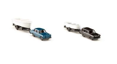 Wiking 092139 - Zwei Bootsgespanne - Mercedes-Benz 280 und VW Variant. 1:160