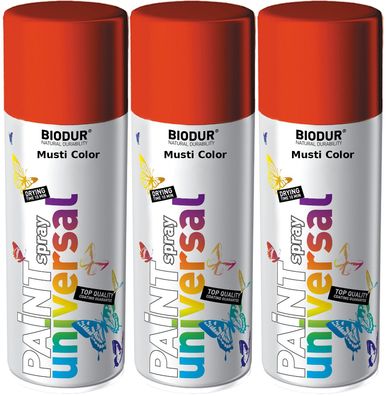 3x400ml Biodur Lackspray Spraydose Sprühlack Spraylack Farbe Karminrot RAL 3002