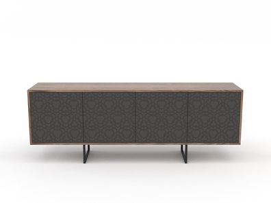 Kommode Sideboard Highboard Wohnzimmer ABATO 134 Lines Walnuss Schwarz
