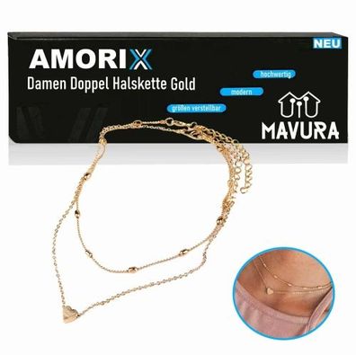 AMORIX Damen Doppel Kette Halskette Gold Herz Set Blogger kurz Valentinstag