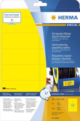 Herma 8029 8029 Signal-Etiketten strapazierfähig A4 99,1x42,3 mm gelb stark haften