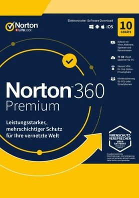 Norton 360 Premium, 75 GB Cloud-Backup, 10 Geräte 1 Jahr KEIN ABO