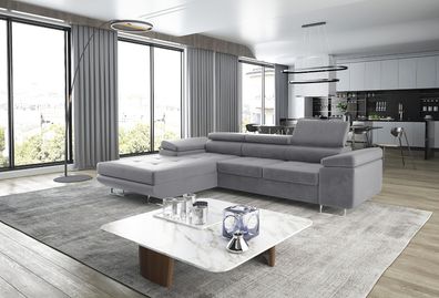 Eckcouch ASTON mit Schlaffunktion und Bettkasten 275 cm verstellbare Kopfstützen