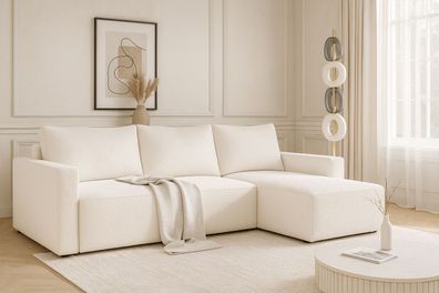 Ecksofa NOYO boucle 230 cm Schlaffunktion mit Bettkasten sofa Bonellfedern