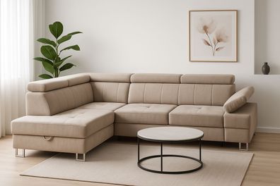 Eckcouch Sorrento mit Schlaffunktion und Bettkasten 275 cm verstellbare Kopfstützen