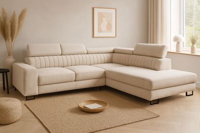 Eckcouch VANITY mit Schlaffunktion und Bettkasten 280 cm verstellbare Kopfstützen