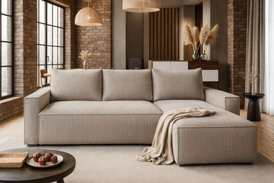Sofa Ecksofa Couch COBO mini 255 cm Cordstoff Schlaffunktion mit Bettkasten POSO