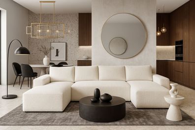 Ecksofa NOYO U 295 cm Schlaffunktion mit Bettkasten sofa Bonellfedern boucle
