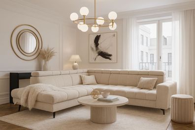 Eckcouch LIVIO XL Schlaffunktion 350 cm verstellbare Kopfstützen wasserdichter Stoff
