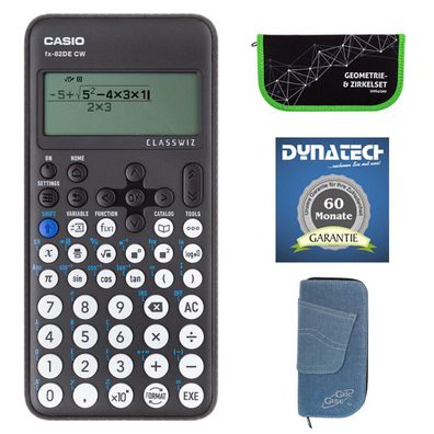 Casio FX-87 DE CW mit CalcCase-Schutztasche, Zirkelset blau und Garantie