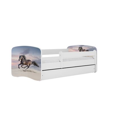Kinderbett Pferd im Galopp mit Schublade ohne Matratze Weiß Jugendbett 90/61/164