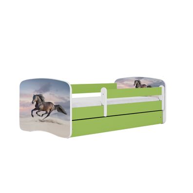 Kinderbett Pferd im Galopp mit Schublade und Matratze Grün Jugendbett 160/80