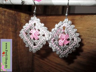 Ohrhänger, Microhäkeln, Grau Rosa, Grannysquare, Einzelstück