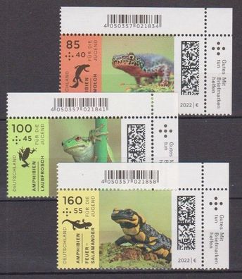 BRD 2022 postfrisch Ecke oben rechts Satz MiNr. 3706-3708 Für gie Jugend Amphibien