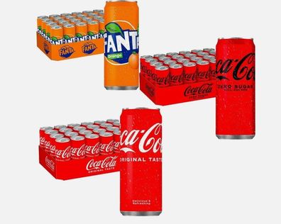 Coca-Cola, Coca-Cola Zero & Fanta Orange - je 1 x 24 x 0,33 l inkl. Pfand