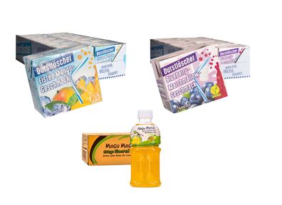 Mogu Mogu Litschi, Johannisbeere 6x320ml & Durstlöscher Pfirsich 12x500ml inkl. Pfand