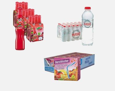 Hayat Premium 0,5l; Durstlöscher Mulitivtamin 0,2l; Dreh & Trink Kirsche inkl.6€