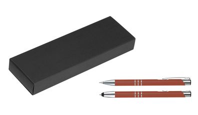 Metall Schreibset / Touchpen Kugelschreiber + Druckbleistift / Farbe: kupfer