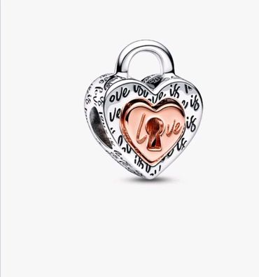 Pandora Bicolor Vorhängeschloss Teilbares Herz-Charm ( 782505C00 )